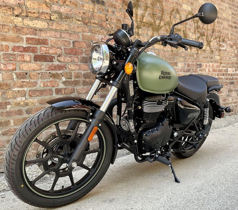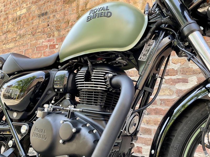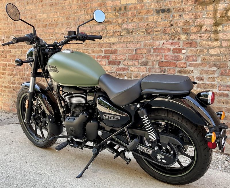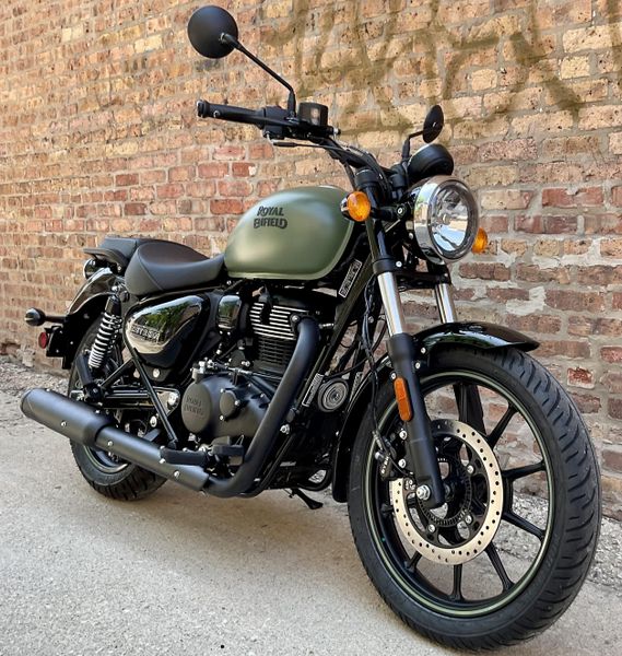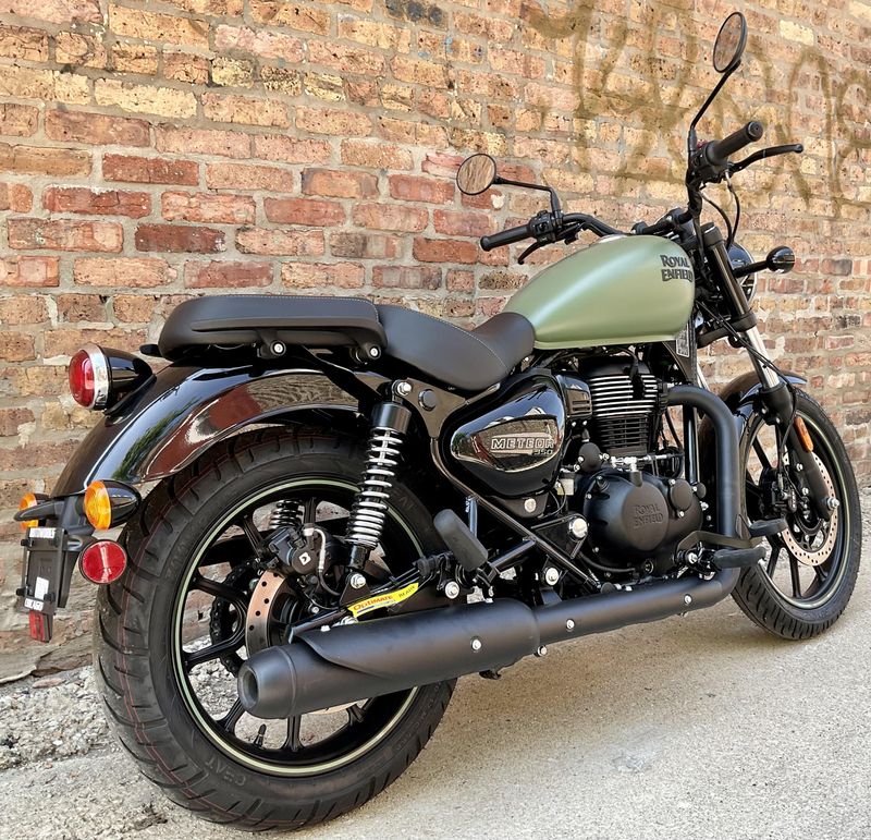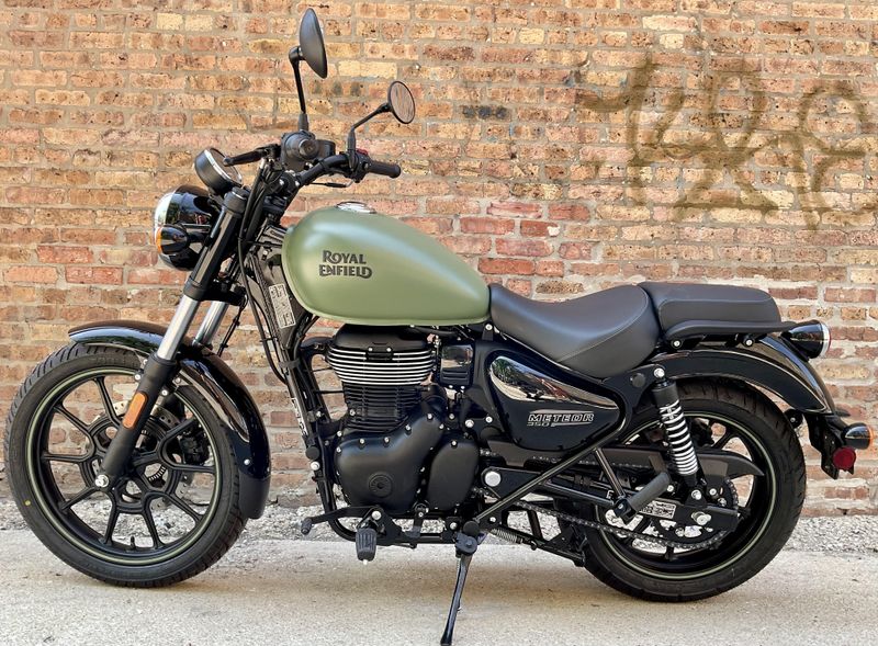 The 2025 Royal Enfield Meteor 350 blends timeless cruiser styling with modern refinement, making it a favorite among riders who value comfort and simplicity. Its 349cc air- and oil-cooled single-cylinder engine produces 20.2 horsepower and 27 Nm of torque, delivering smooth, relaxed performance ideal for city rides and open-road cruising. Built on a stable twin-downtube frame with 41mm front forks and adjustable twin rear shocks, the Meteor offers a comfortable, confidence-inspiring ride. Dual-disc brakes with ABS ensure solid stopping power, while the low 765mm seat height and 15.1-liter fuel tank make it practical for everyday use. Updated features like LED lighting, a Tripper navigation display, and new color options add modern appeal to this easygoing, character-filled cruiser.