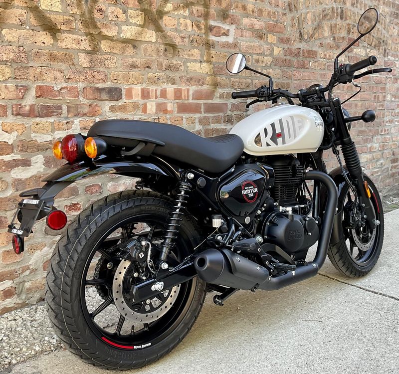 The 2024 Royal Enfield Hunter 350 is a lightweight, agile motorcycle that combines classic design with modern performance. Its 349cc J‑Series engine delivers 20.2 bhp and 19.9 lb‑ft of torque, providing smooth and responsive power for city streets and relaxed rides. The compact frame, 17-inch alloy wheels, and low center of gravity make it easy to handle and maneuver, while the firm suspension adds a spirited, engaging feel on the road. With a comfortable 31.1-inch seat height, the Hunter 350 is accessible to a wide range of riders, making it a stylish and practical choice for everyday commuting and weekend adventures.
