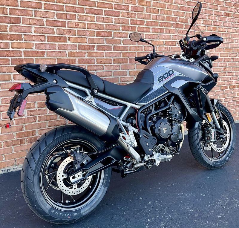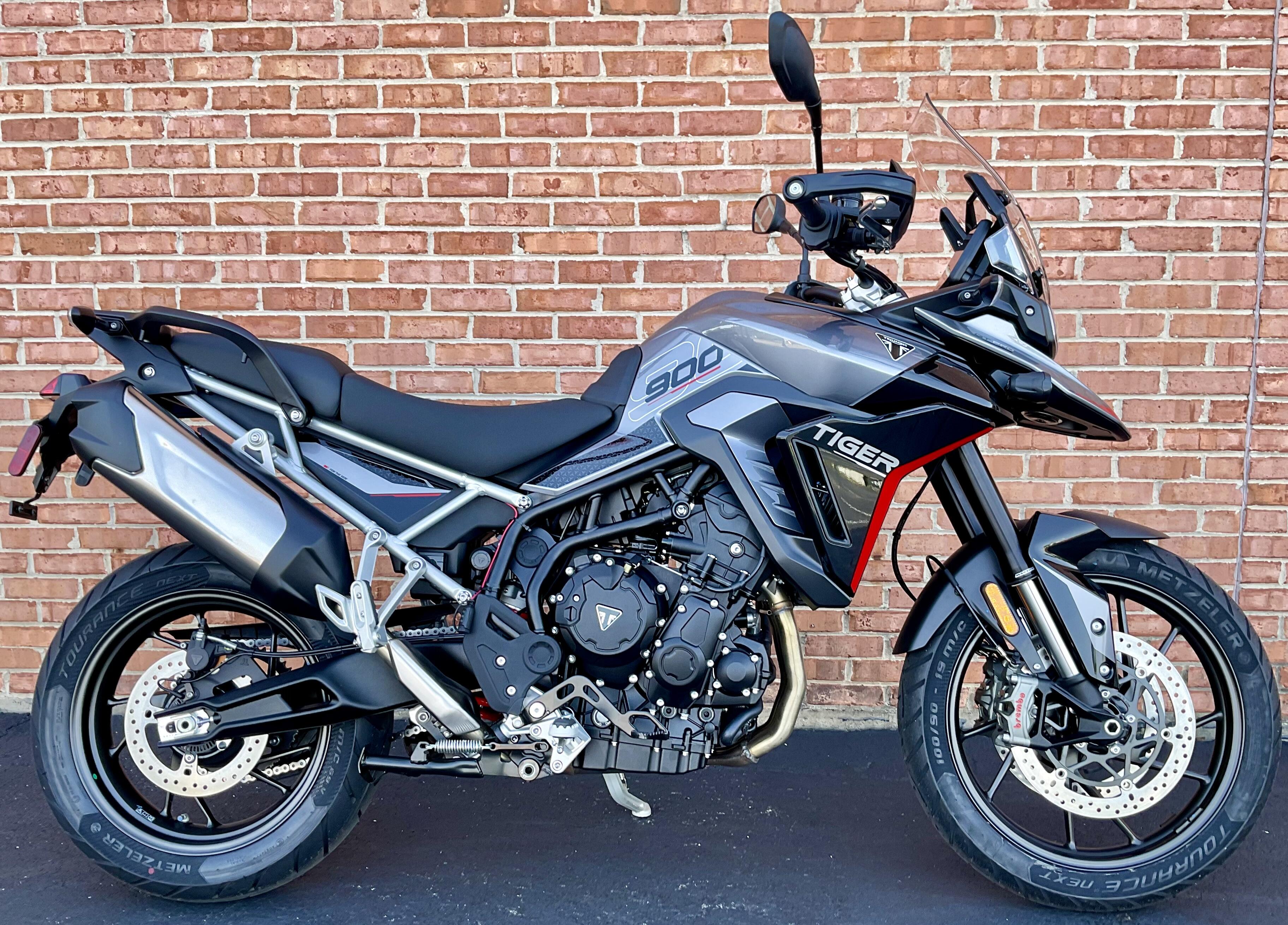 The 2024 Triumph Tiger 900 GT Pro strikes the perfect balance of comfort, power, and versatility, ready for both paved roads and off-road adventures. Its 888cc triple engine delivers smooth, responsive power that shines on long journeys and dirt trails alike. Loaded with premium features like adjustable suspension, heated grips, a quickshifter, ride modes, and a sharp TFT display, it combines modern tech with a comfortable ride and strong wind protection, making it ideal for riders who want adventure without sacrificing comfort or convenience.