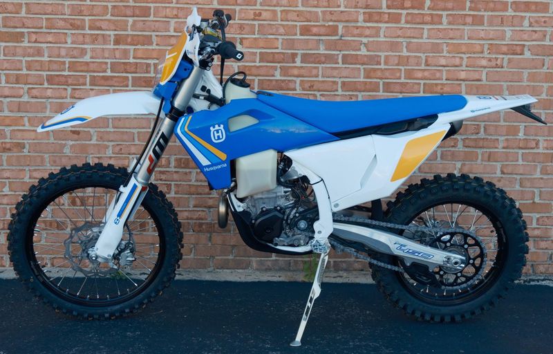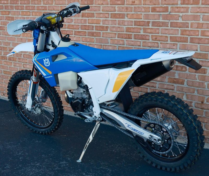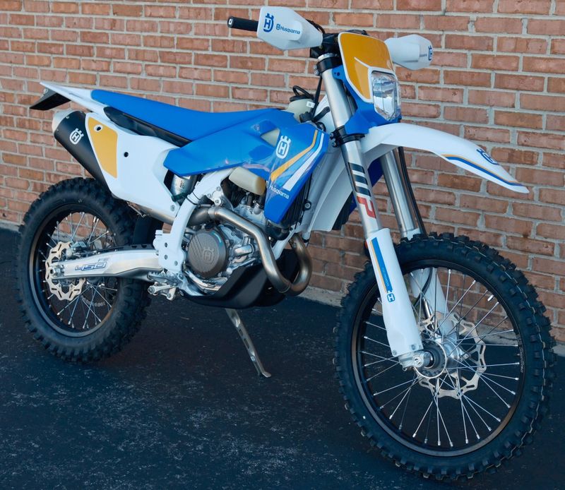 Riders love the 2025 Husqvarna FE 450 Heritage for its perfect blend of power, control, and craftsmanship. Its lightweight chromium-molybdenum steel frame, balanced center of gravity, and premium WP XACT suspension deliver exceptional handling and stability on demanding terrain. The engine’s smooth, tractable power and advanced electronics—like selectable mapping and traction control—make it both capable and confidence-inspiring. Add in Brembo brakes, ergonomic bodywork, and the striking blue, white, and yellow Heritage graphics, and the FE 450 Heritage stands out as a high-performance enduro machine that’s as refined and reliable as it is beautiful.