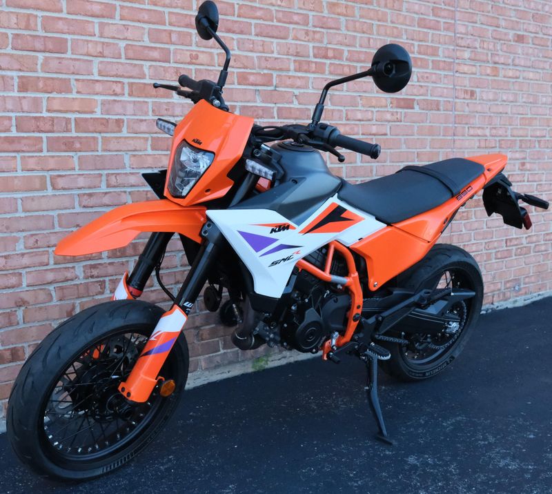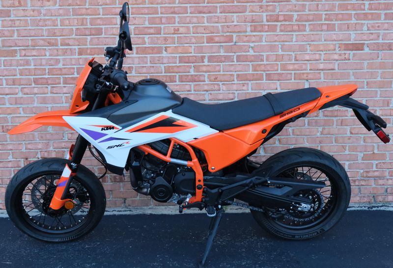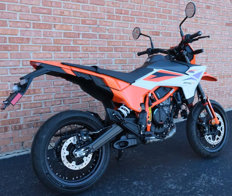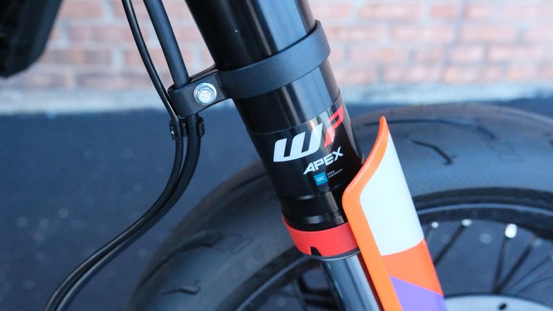 The 2025 KTM 390 SMC R has garnered praise for its exceptional blend of performance, agility, and value in the supermoto category. Powered by a 399cc LC4c single-cylinder engine, it delivers impressive acceleration and handling, making it ideal for both spirited street riding and tackling tight, twisty roads. The chassis features a two-piece steel trellis frame with a gravity-cast aluminum swingarm, offering enhanced rigidity and feedback. Suspension duties are handled by a 43mm WP APEX open-cartridge fork and a WP APEX shock, both providing 230mm of travel and adjustable settings to suit various riding conditions. The bike is equipped with Michelin Power 6 tires on 17-inch spoked wheels, ensuring excellent grip and quick turn-in. Braking performance is robust, with a 320mm front disc and Bybre caliper, complemented by a 240mm rear disc, all managed by Bosch's 10.3MB ABS system, which includes a Supermoto mode for rear-wheel lockup. The 4.2-inch TFT display offers features like turn-by-turn navigation, music, and call integration, enhancing the riding experience. With a weight of 354 pounds and a seat height of 33.8 inches, the 390 SMC R is accessible to a wide range of riders. Its aggressive styling and comprehensive features make it a standout choice for enthusiasts seeking a high-performance supermoto at an accessible price point.