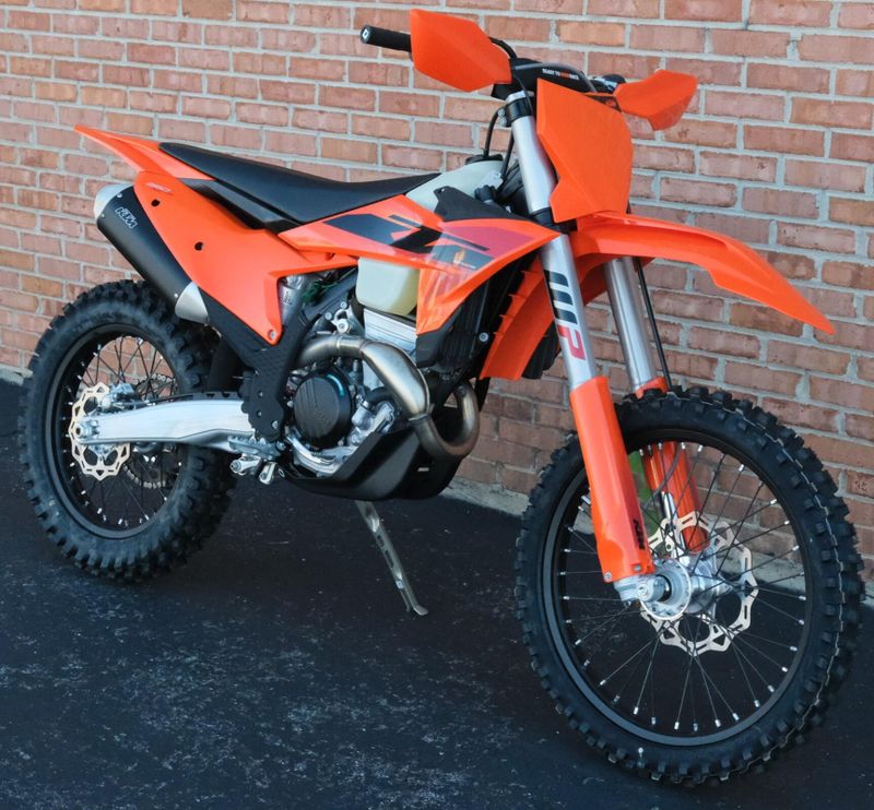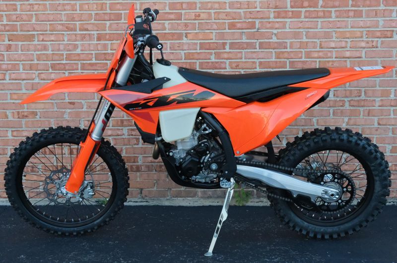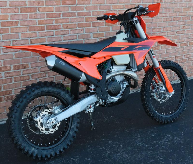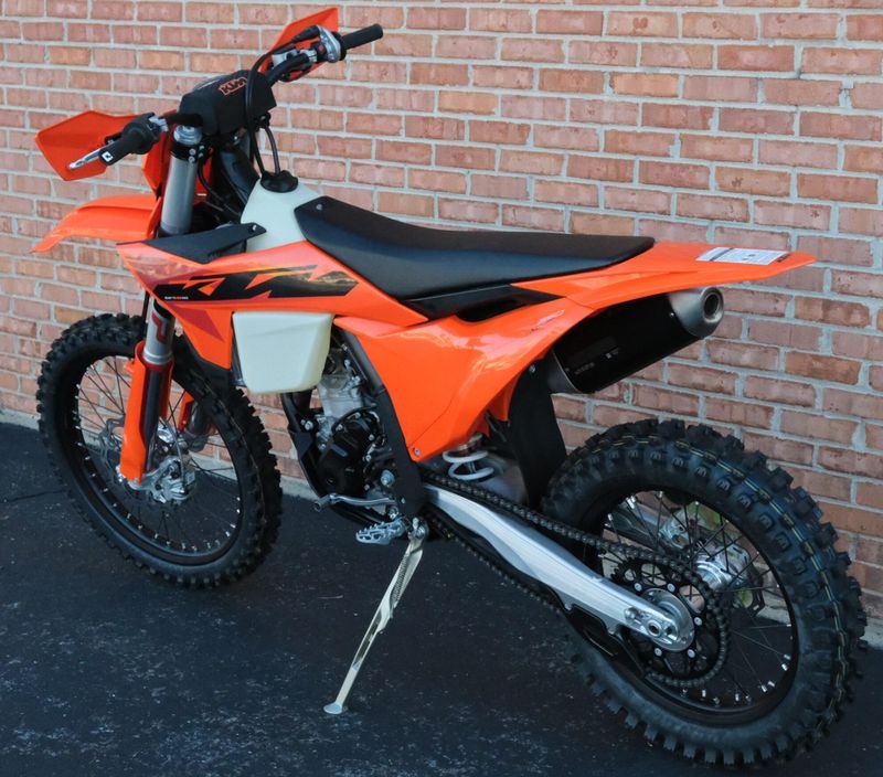 Riders love the 2025 KTM 350 XC-F for its ideal balance of power, agility, and precision engineering. Its 349.7cc four-stroke DOHC engine delivers a smooth yet potent mid-range punch with impressive top-end pull, while the refined steel frame enhances stability and cornering control. The WP XACT suspension system—featuring closed-cartridge forks and a linkage rear shock—provides excellent feedback and adjustability across varied terrain. Ergonomics are thoughtfully designed, with a flat, high-grip seat, optimized rider triangle, and easy-access controls that keep the bike comfortable and intuitive to handle. Combining the muscle of a 450 with the nimbleness of a 250, the 350 XC-F stands out as one of the most versatile and confidence-inspiring cross-country machines in KTM’s lineup.