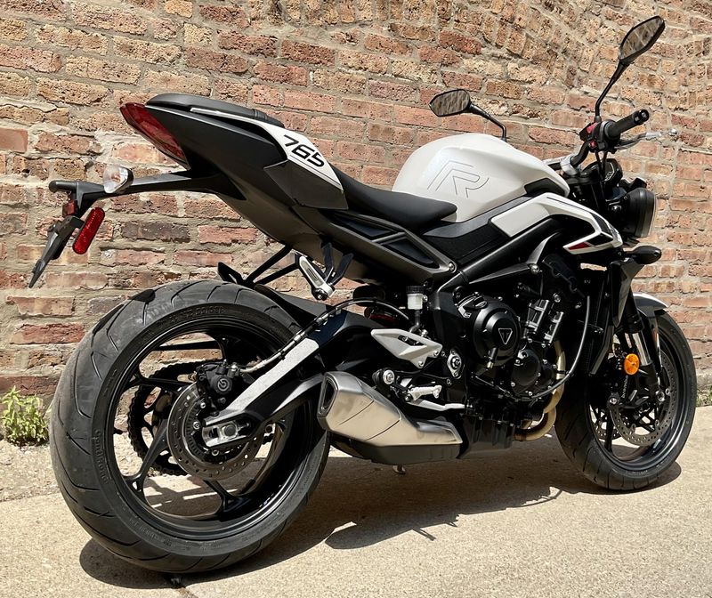 The 2025 Triumph Street Triple R delivers the perfect mix of razor-sharp performance, everyday usability, and unmistakable streetfighter character. Its lively 765cc inline three-cylinder engine produces around 118.4 hp at 12,000 rpm and 59 lb-ft of torque at 9,500 rpm, giving you smooth, responsive acceleration and that signature Triumph triple sound. A 6-speed gearbox with Triumph Shift Assist provides effortless clutchless upshifts and downshifts, making every ride feel faster, cleaner, and more connected.