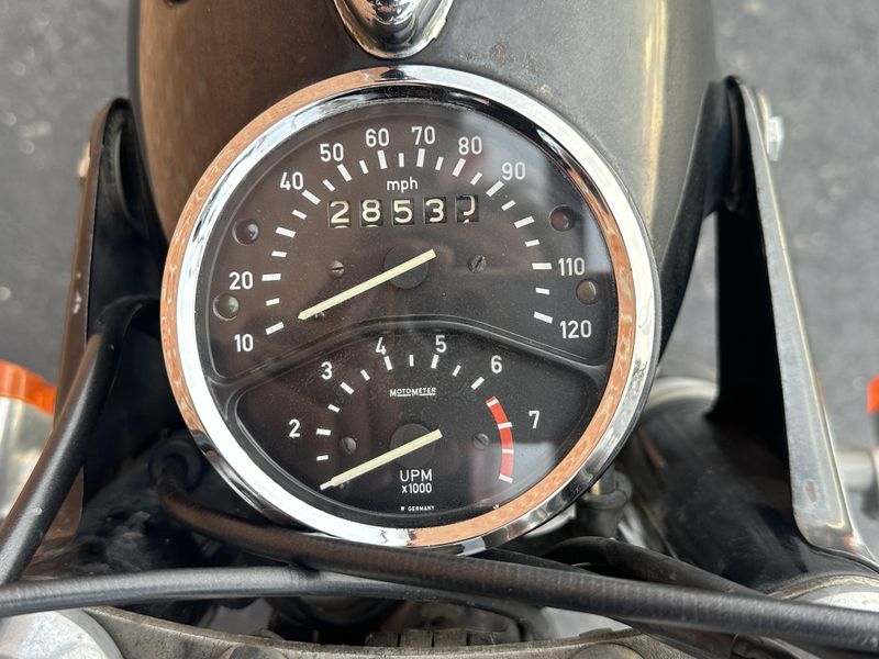 1971 BMW R50/5. This is an R50/5 with an R75/5 engine and drivetrain in it. It leaks some oil, but it's in beautiful condition and it runs and rides great with only 28,530 miles!