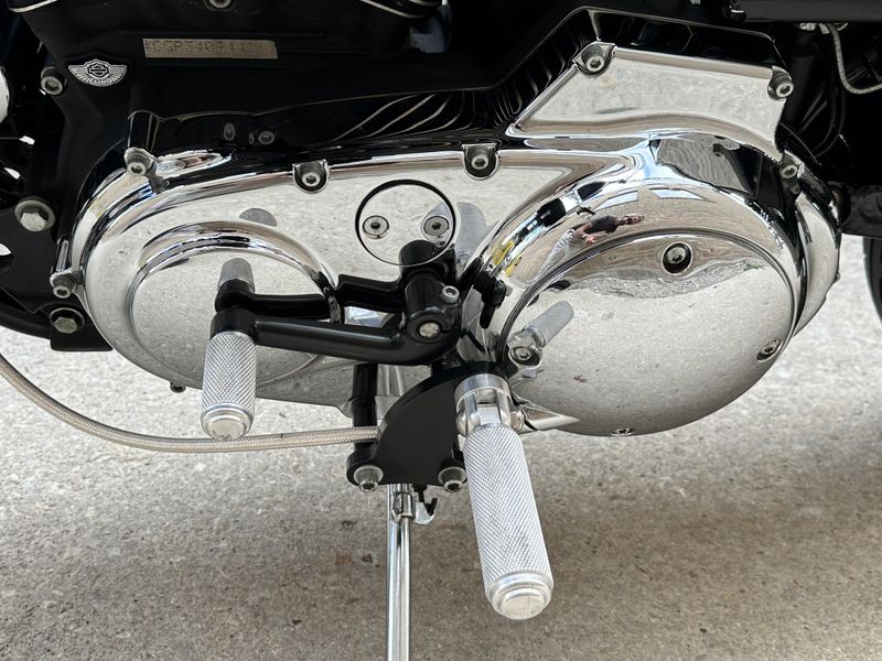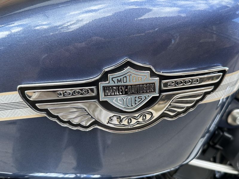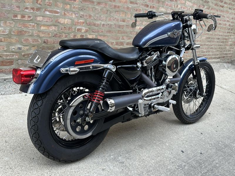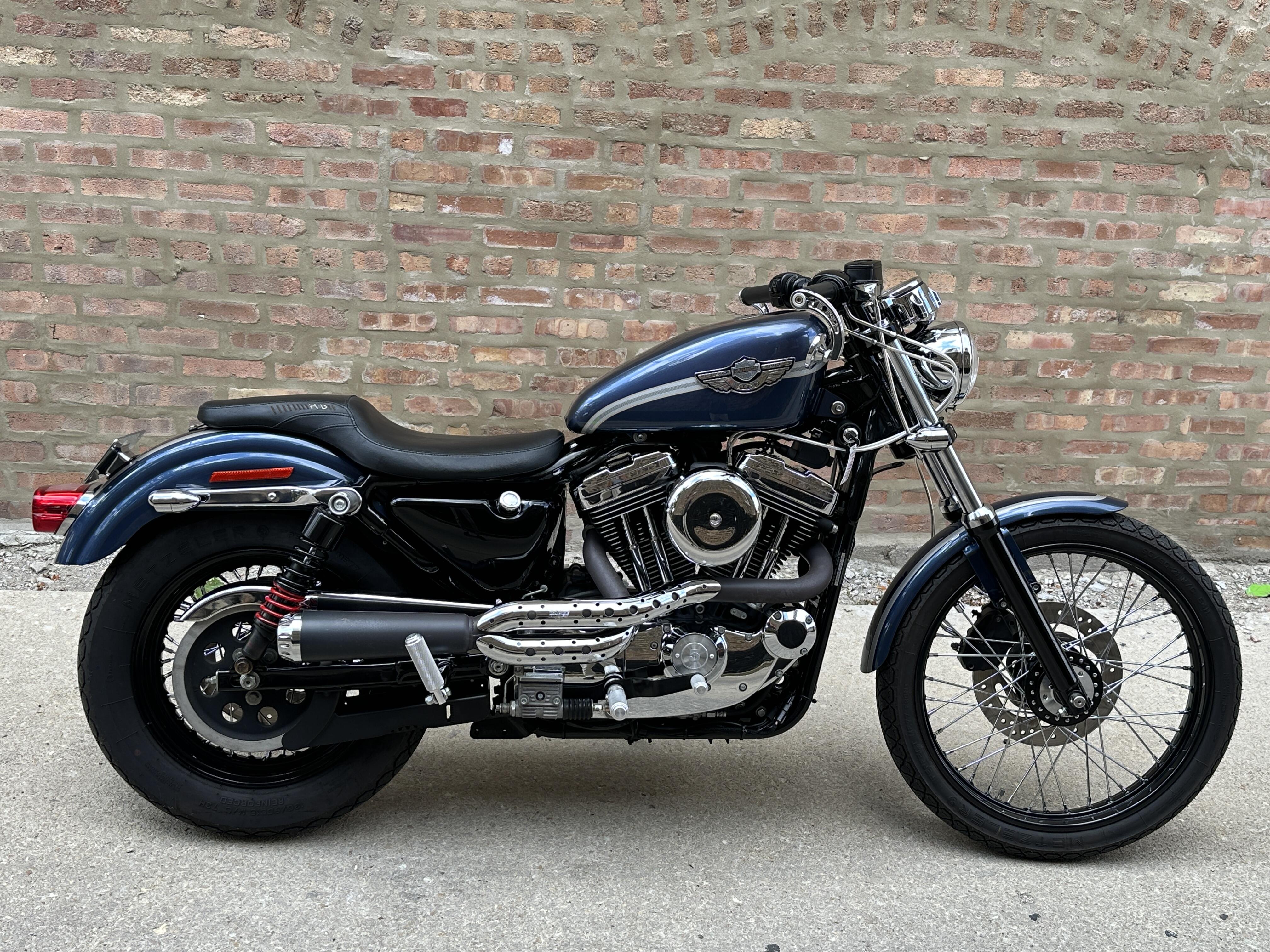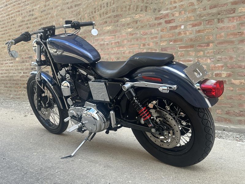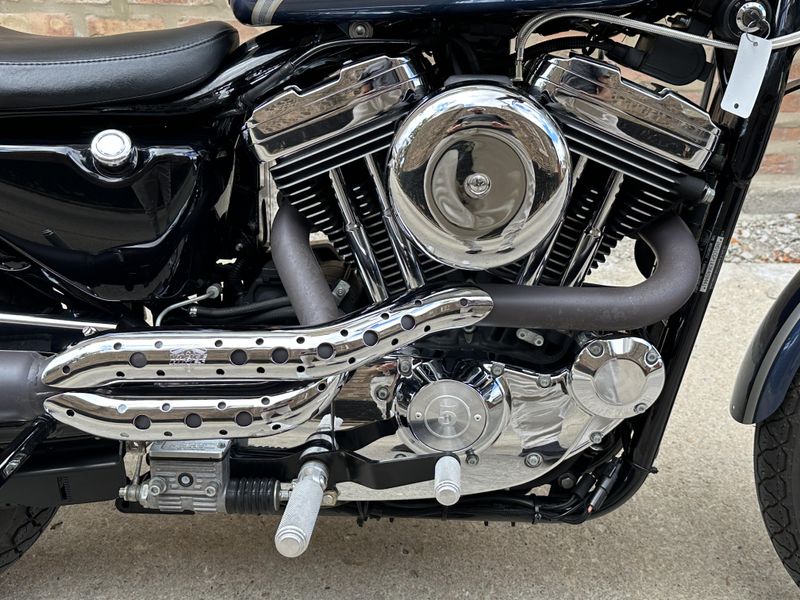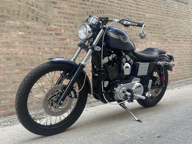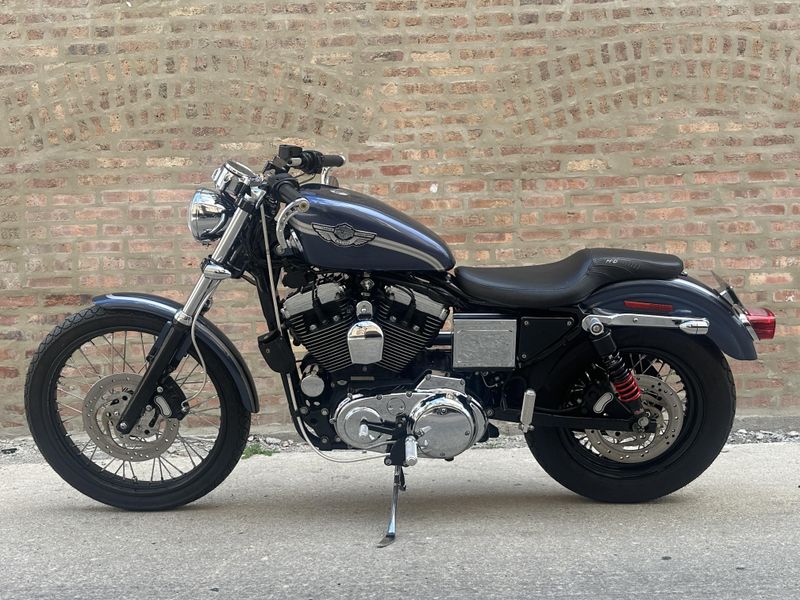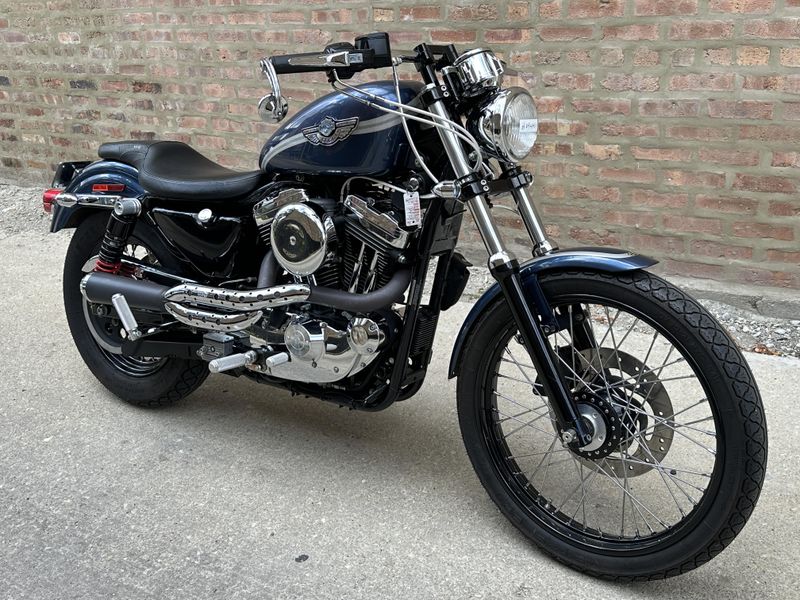 2003 Harley Davidson Sportster 1200 Custom 100th Anniversary Edition. Customized with lots of cool bits including Vance & Hines Roland Sands Designs performance exhaust, low profile seat, Burly rear shocks, bar end mirrors, shaved levers, speedometer housing, triple clamps, handlebars, handlebar risers, foot pegs, foot controls, gas cap, and turn signals. It's in beautiful condition, and it runs and rides great with only 19,547 miles.