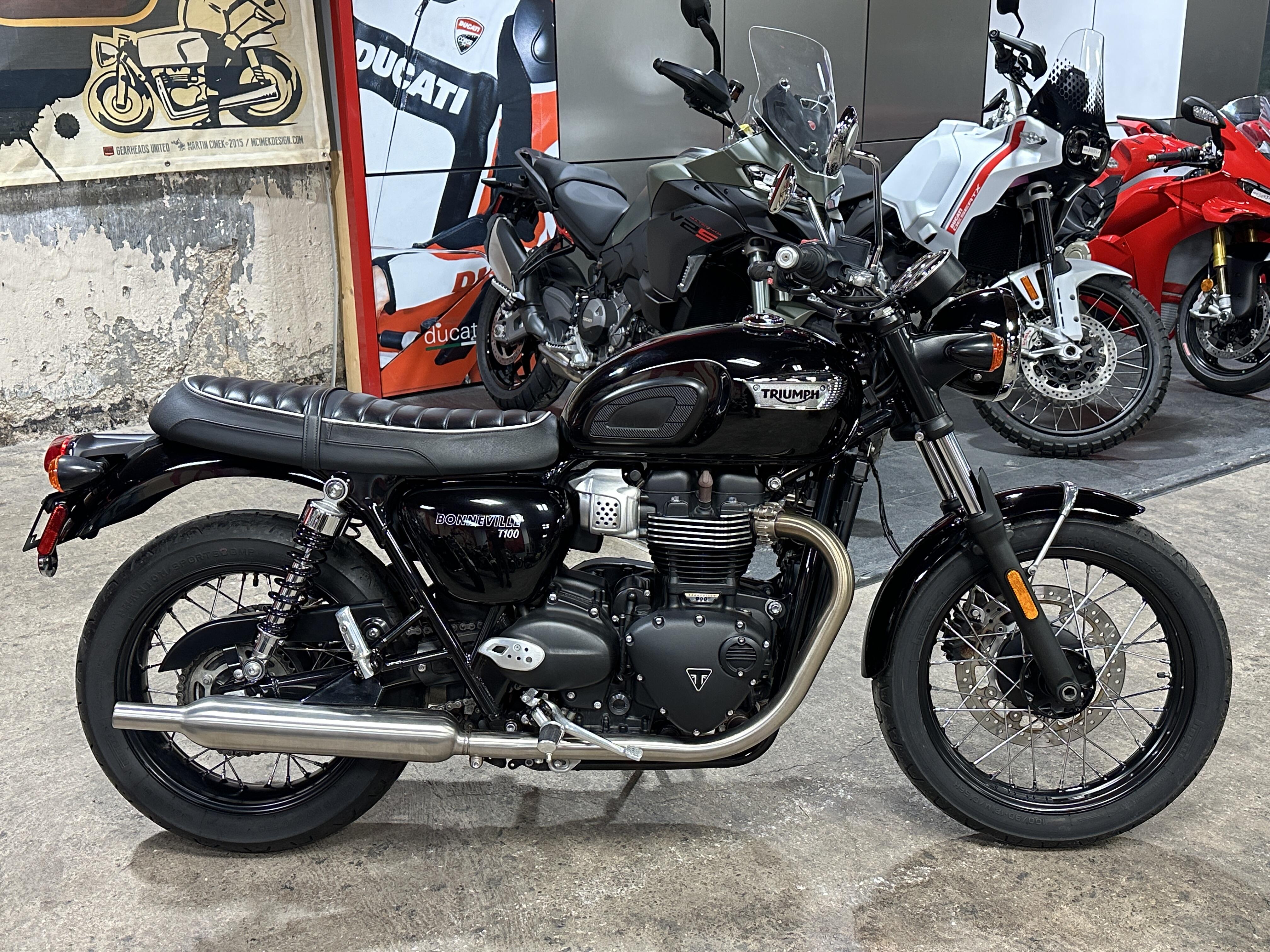 2022 Triumph Bonneville T100 Black. It's in gorgeous condition and it runs and rides beautifully with only 4,719 miles!