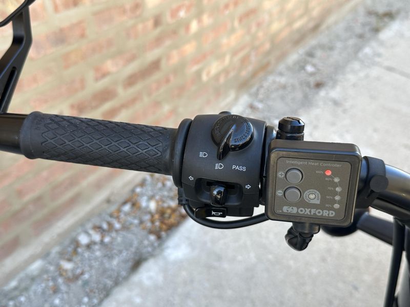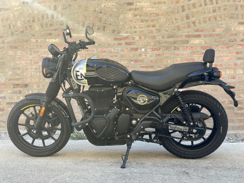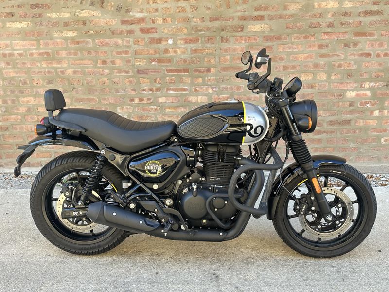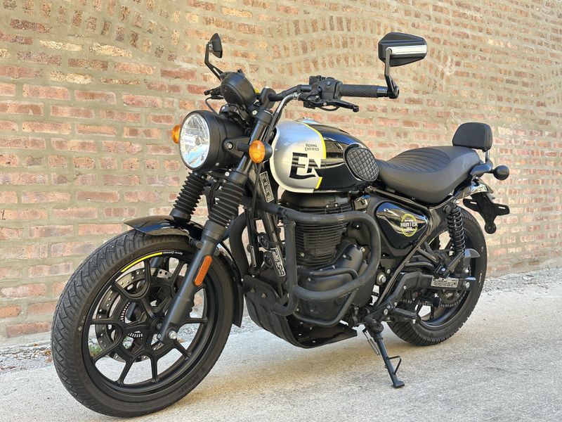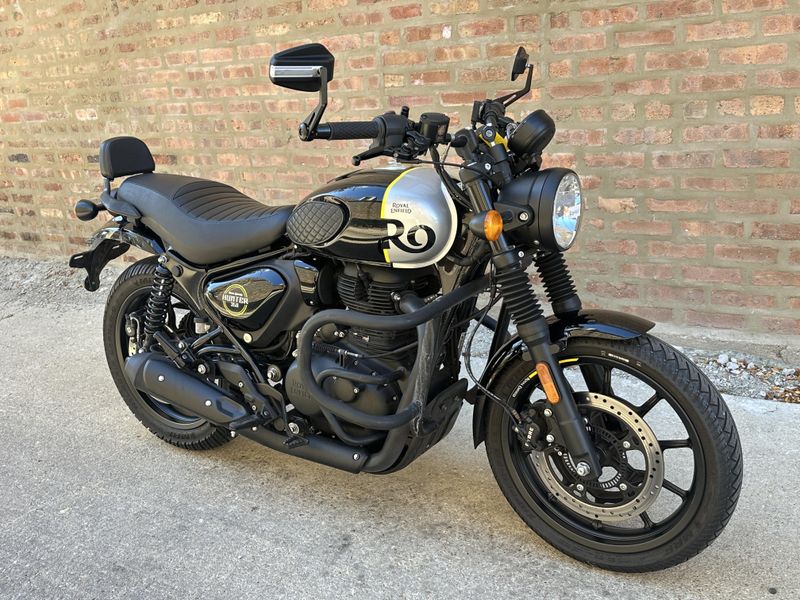 2023 Royal Enfield Hunter 350. Heated grips, adjustable levers, bar end mirrors, engine protection bars, tank protection pads. It's in nice shape and it runs and rides great with only 6,341 miles!