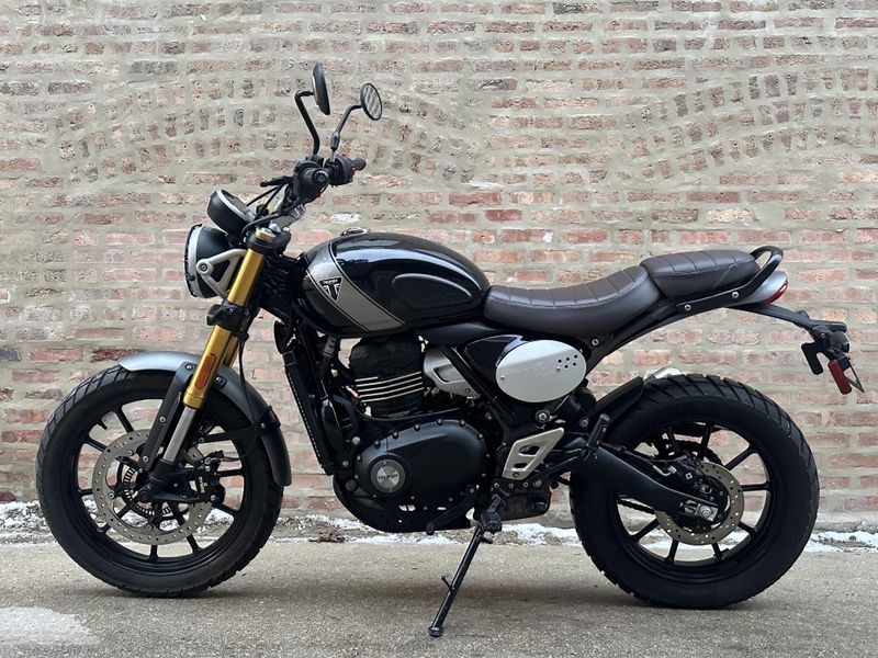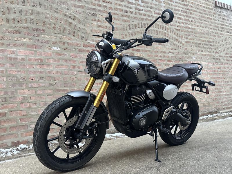 2024 Triumph Scrambler 400 X. It's in excellent condition and it runs and rides great with only 2,571 miles!