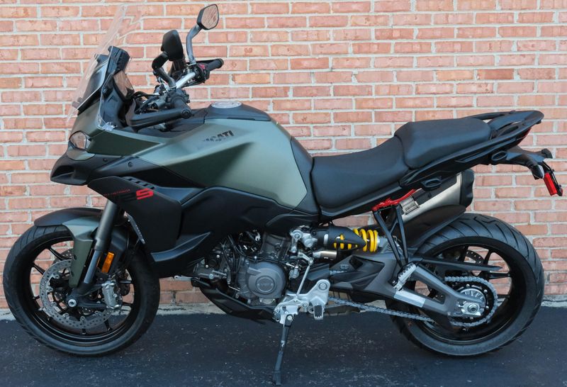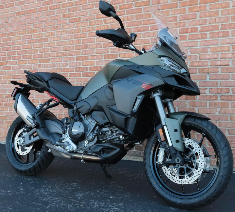 The 2025 Ducati Multistrada V2 S delivers a premium middleweight adventure-touring experience, blending Ducati performance with everyday comfort and cutting-edge technology. Its 890cc V2 engine produces a lively 115 horsepower and 67.9 lb-ft of torque, offering smooth, responsive power for highway cruising and twisty backroads. A lightweight aluminum monocoque frame enhances agility and rider confidence, while the semi-active Skyhook suspension continuously adapts to road conditions for superior comfort and control. With a crisp 5-inch TFT display, five ride modes, traction and wheelie control, and adjustable engine braking, the Multistrada V2 S stands out as a versatile, tech-forward adventure motorcycle built for long-distance riding.